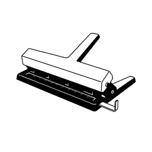 Corpo in alluminio presso fuso, con punzoni regolabili ed estraibili in acciaio. Righello in alluminio inciso e squadra di regolazione in acciaio nichelato. Piedini in gomma antigraffio.